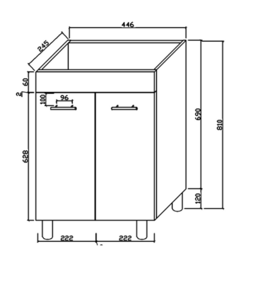 B450Â Base Cabinet Dimensions: Width:Â 450mm Height:Â 720mm Depth:Â 578mm